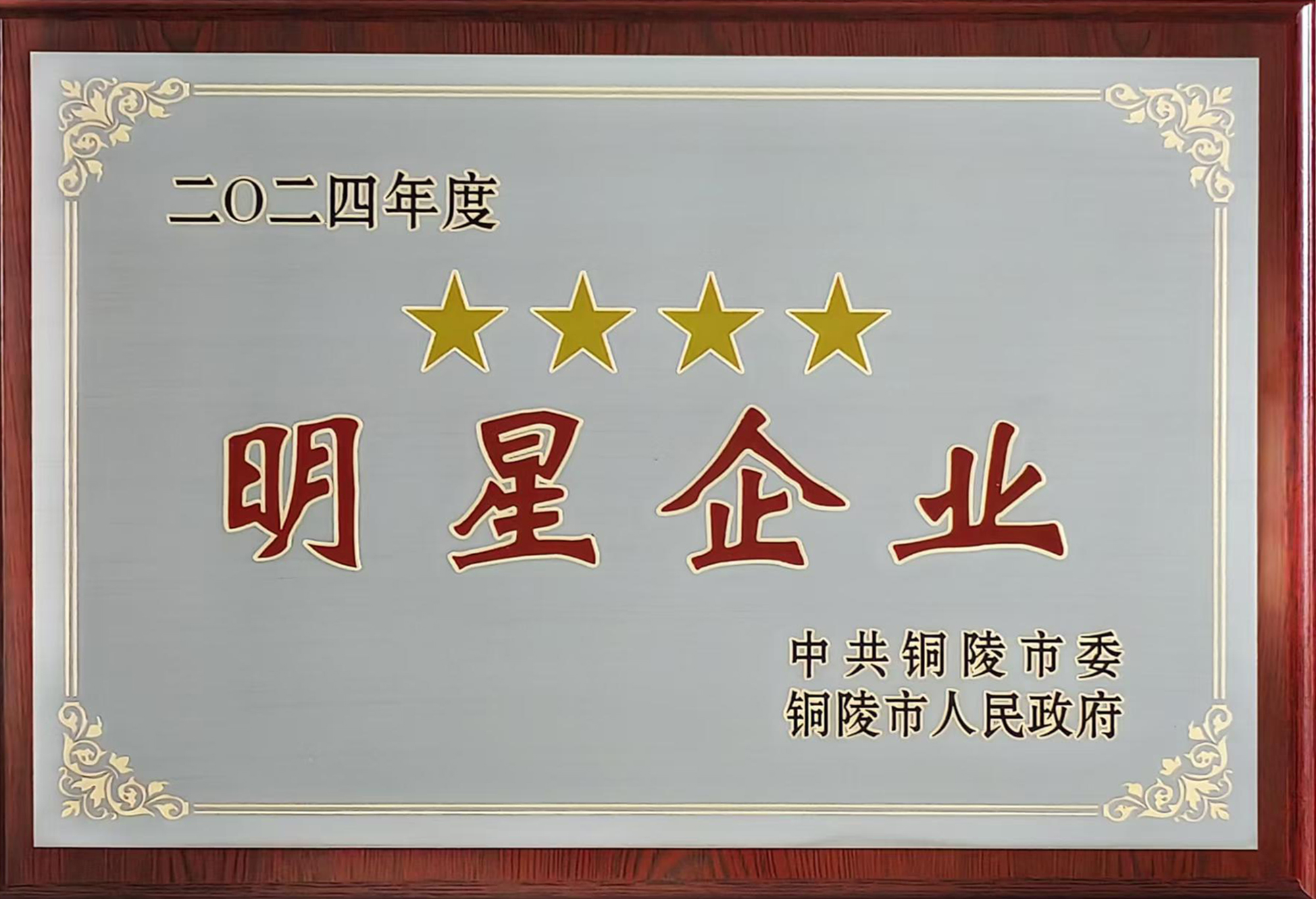 2月6日上午,銅陵市在市行政會(huì)議中心隆重召開(kāi)“新春第一會(huì)”——全市重大項(xiàng)目提升年暨營(yíng)商環(huán)境深化年動(dòng)員大會(huì)。會(huì)上表彰了2024年度全市突出貢獻(xiàn)單位、星級(jí)企業(yè)(其中工業(yè)類(lèi)五星企業(yè)6家、四星企業(yè)4家、三星企業(yè)14家)、單項(xiàng)貢獻(xiàn)獎(jiǎng)(其中稅收增長(zhǎng)貢獻(xiàn)獎(jiǎng)8家)等先進(jìn)集體和先進(jìn)個(gè)人。公司首次獲評(píng)“工業(yè)四星企業(yè)”,并獲“稅收增長(zhǎng)貢獻(xiàn)獎(jiǎng)”,這是公司繼多次獲評(píng)“工業(yè)三星企業(yè)”后的又一新突破。公司總經(jīng)理鮑俊華代表公司出席領(lǐng)獎(jiǎng)并在主席臺(tái)就坐。