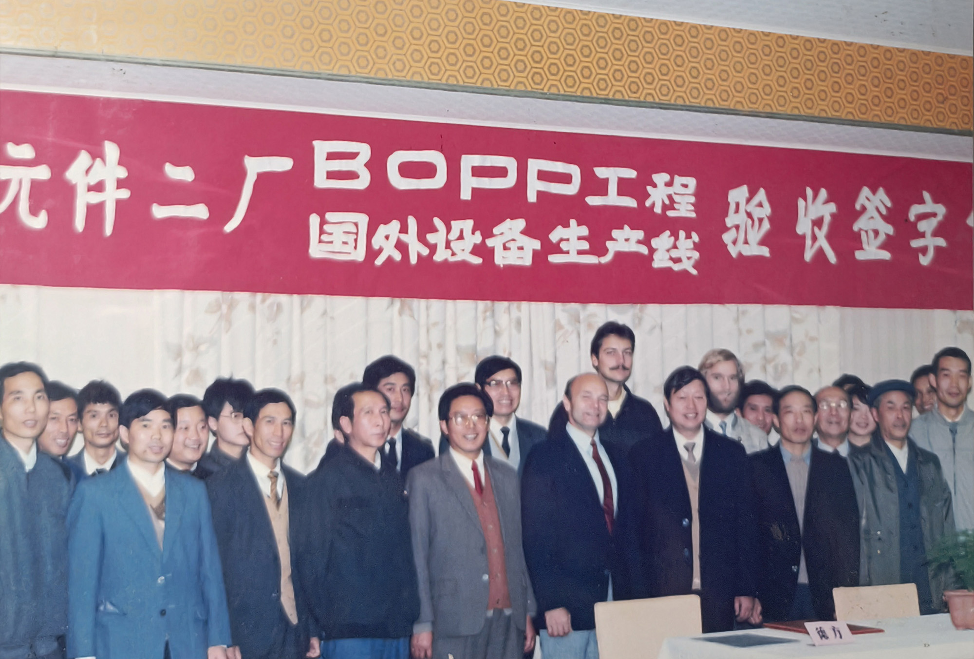 銅峰“老一線”于1989年建成投產。上世紀80年代,當時國內電容器用聚丙烯膜幾乎完全依賴進口,嚴重制約了我國電容器等相關產業(yè)的發(fā)展。銅峰公司前身銅陵市無線電元件二廠積極響應國家需求,決定從國外引進雙向拉伸電容器用聚丙烯膜生產線。1985年項目啟動,經過一系列籌備工作,1986年獲得國家計委批準立項,并被列入國家 “七五” 機械電子工業(yè)重點技改項目。1988年,主線和相關輔助設備成功引進。經過一年多的緊張建設,1989年生產線正式投產?!袄弦痪€”的建成投產,是銅峰發(fā)展史上具有重要意義的轉折點。該線加速了銅峰公司產品結構調整和轉型步伐,并由此形成了全國唯一的“電工三膜”(電容薄膜、金屬化膜和薄膜電容器)一條龍的生產格局,使企業(yè)的經濟規(guī)模和技術水平躍上一個新臺階。