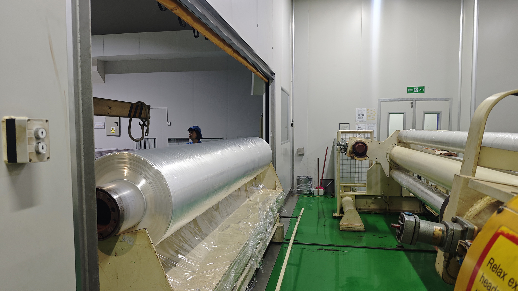 圖為BOPP-1生產線正式退役前最后一卷薄膜產品下線