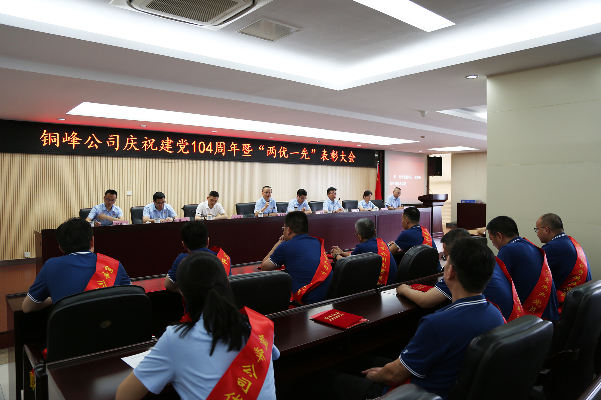 為熱烈慶祝中國共產(chǎn)黨成立104周年,表彰先進(jìn)、樹立榜樣,激勵(lì)廣大黨員干部職工在新征程上展現(xiàn)新作為,6月27日下午,公司在辦公大樓二樓職教室隆重召開慶祝建黨104周年暨“兩優(yōu)一先”表彰大會。公司黨委書記、董事長黃明強(qiáng)出席大會并講話,黨委委員、總經(jīng)理鮑俊華宣讀表彰決定,黨委副書記潘世宇主持會議并就貫徹落實(shí)會議精神作出部署。公司黨委領(lǐng)導(dǎo)班子成員和公司級黨員領(lǐng)導(dǎo),紀(jì)委委員,各黨(總)支部書記、委員,“兩優(yōu)一先”表彰對象、黨員代表、新黨員、入黨積極分子代表等參加會議。